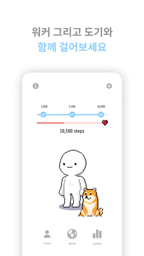 - 최초 하루 만보 이상 달성 등의 업적을 이루면 새로운 워커를 획득할 수 있어요!