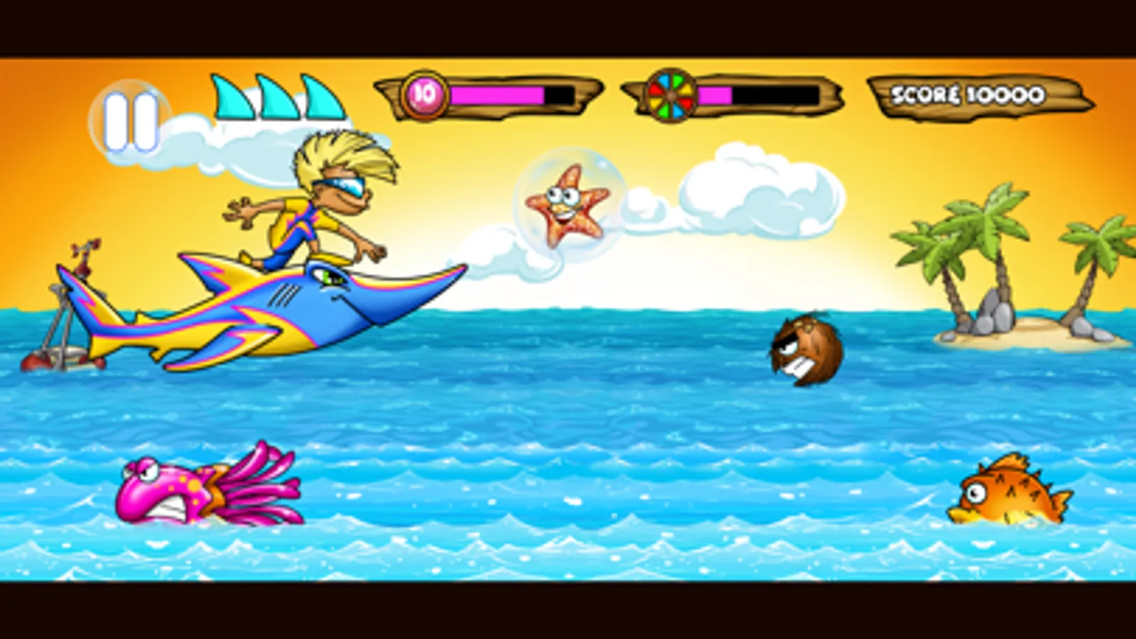 Make surfing history in this coconut dodging, jellyfish jumping, all-action surf challenge game based on the Surf Sharks illustrated book series! Reach your highest score as you test your reflexes collecting bubbled starfish and coin filled pelicans, but it won’t be easy with angry octopi and puffing puffer fish trying to knock you off your shark!