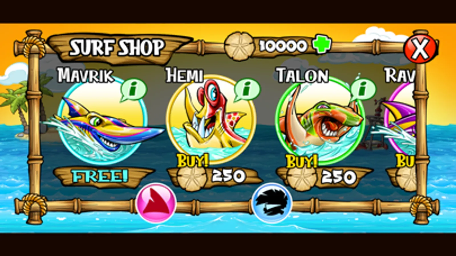 The surf fun doesn’t stop ON the water! Wade the “Wiz” has made a special mask for the surfers to go underwater and breathe like fish! Collect this special mask to go UNDER water with your shark! Collect as many coins as you can for added points and increased score! Grab them ALL and earn a super BONUS!