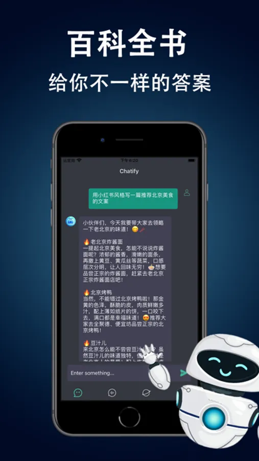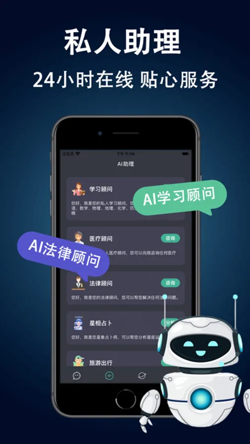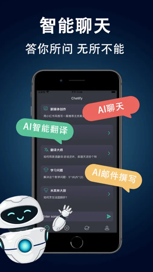 We have developed an intelligent chat robot using the latest and most advanced AI model. It can simulate human conversations and engage in natural and smooth communication with you. It can help you create and solve various life problems, providing you with a more efficient, intelligent, and personalized AI experience