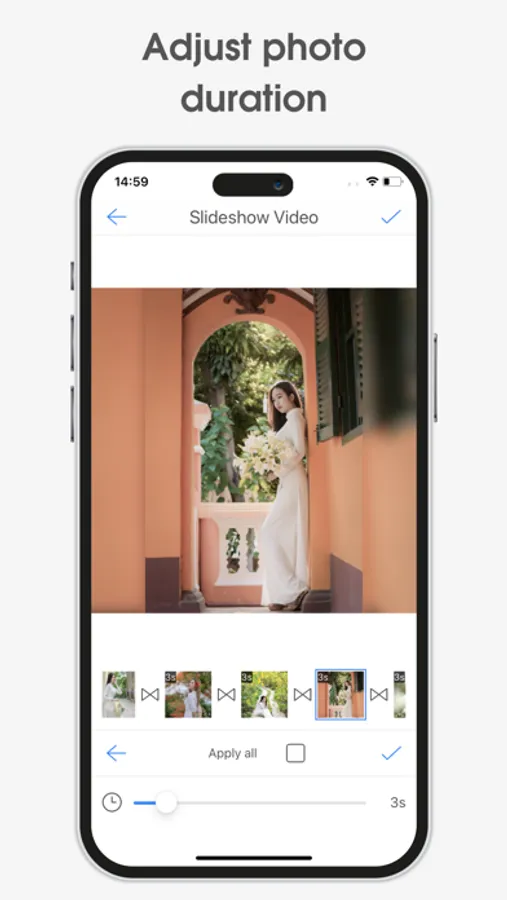 - You can customize the video duration, the transition duration between two images as long or short as you want.