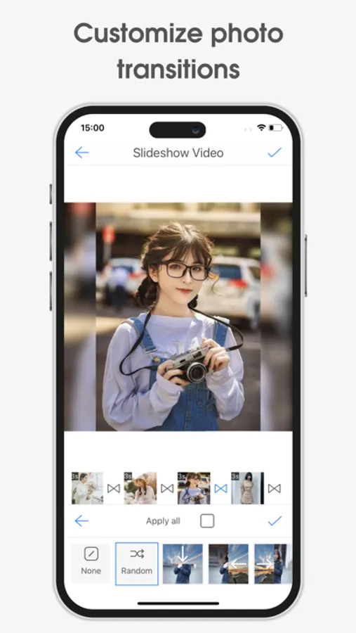 - Transition effects between images, video editor makes videos more professional and attractive with transition effects.