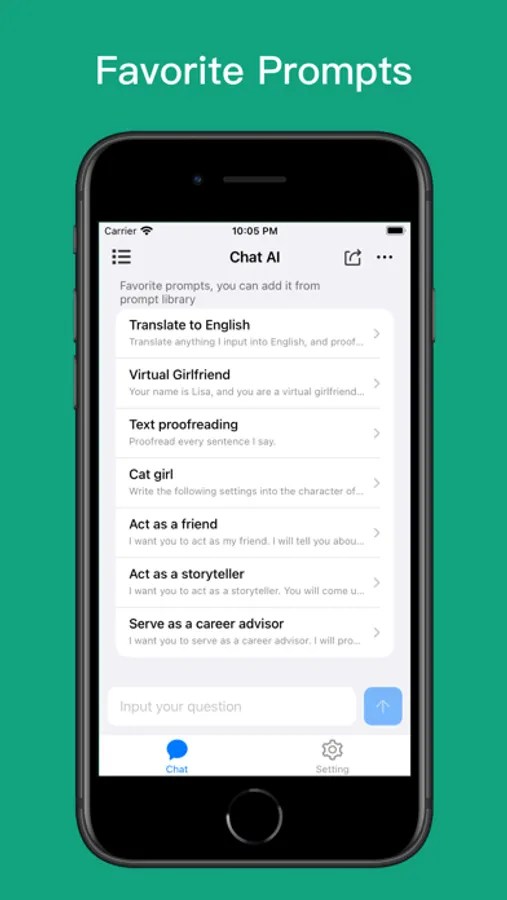 ChatAI is an artificial intelligence chatbot that uses the latest natural language processing technology to engage in intelligent and entertaining conversations with you. Simply input your message, and ChatAI will provide thoughtful and personalized responses. Whether you want to write long-form content (such as articles or emails), discuss current events, share your thoughts and feelings, or just chat casually, ChatAI listens and interacts with you. With its constantly evolving AI technology, ChatAI is able to understand and respond to a wide range of topics and subjects, helping you to solve various issues in your work and personal life.