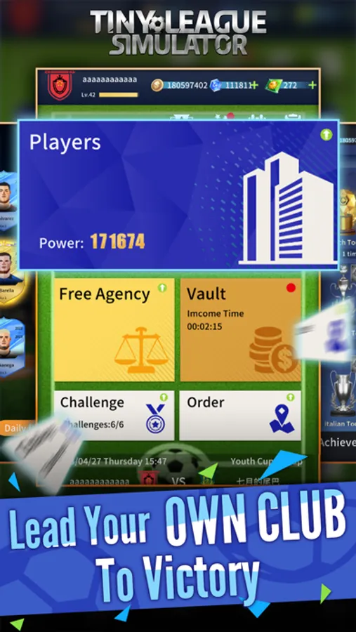 "Tiny League Simulator" is a highly casual sandbox football game. Play as a club president and save a football club on the verge of bankruptcy. Strategize and break through your opponent's goal on the simulation sandbox. There are over 900 football stars waiting for your recruitment! Build your team of superstars, travel to different countries, and conquer all teams in the world! Develop exclusive training routes for your stars and let them be active in various departments of your club! Compete with other players and climb to the top of the Super Challenge Cup!