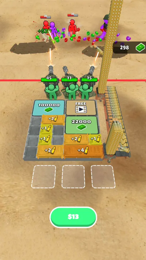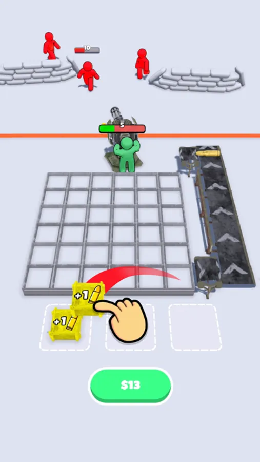 As the enemies approach, you'll need to rely on your quick reflexes to shoot them down and protect your base. But with limited bullets, you'll have to make every shot count. That's where merging ammo boxes with weapons comes in handy - the more you merge, the bigger your bullets become, allowing you to take down enemies with greater ease.
