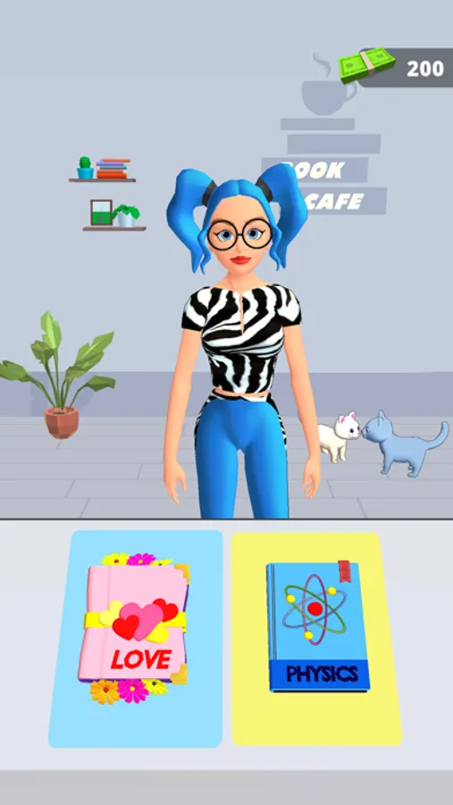 Let's operate your own bookstore cafe! Start with a simple bookshelf and expand your cafe slowly. Hire workers, and built coffee stations and pastry corners. Invite famous writers and organize book signing events to make your cafe more famous. Play mini-games and complete tasks to earn more money and expand your cafe. Are you ready for your new challenge?