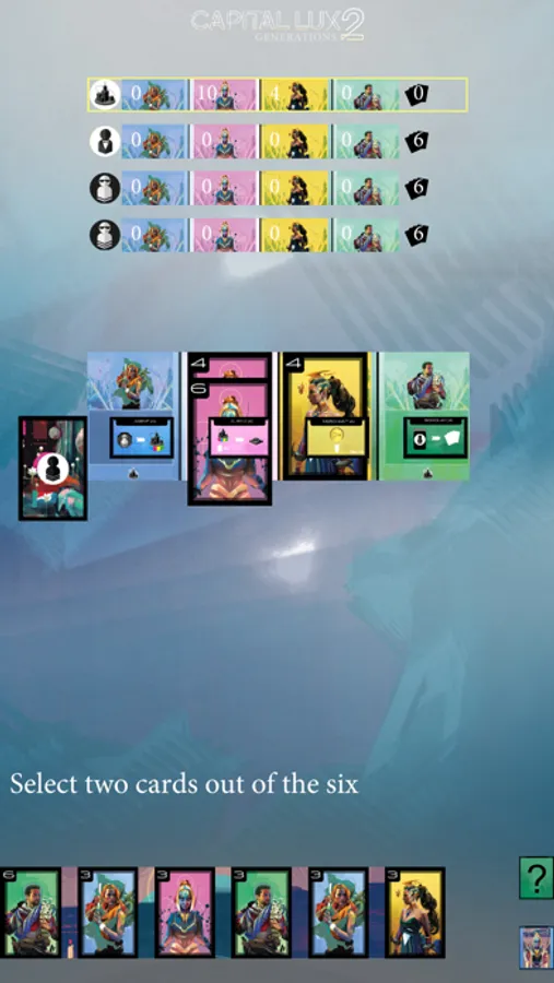 Each round begins with the players drafting a hand of six character cards. On your turn, you must play a card either in front of you (your hometown) or in the middle of the table (the capital). When you play a card into the capital, you benefit from the card's special ability.