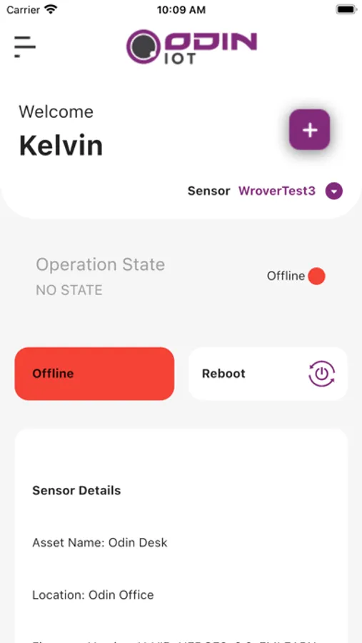 The Odin IoT app helps you to onboard your Raven sensors by configuring the Wifi credentials, mapping the sensors and remotely monitoring the status of your assets.