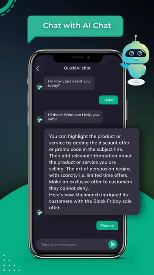 QuicklAI is an AI-powered chatbot app, built using GPT 3.5 Turbo(by Open AI) that offers a personalized and instant messaging experience to make your conversations more intelligent and effective. This ChatGPT Chatbot or OpenAI Chatbot helps you with almost anything you need at the comfort of your smartphone.