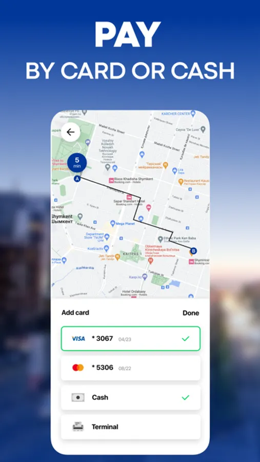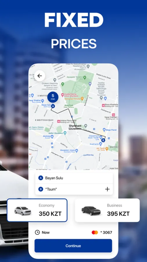 Taxi order app in Shymkent, Kazakhstan. Fixed prices from 250 KZT!