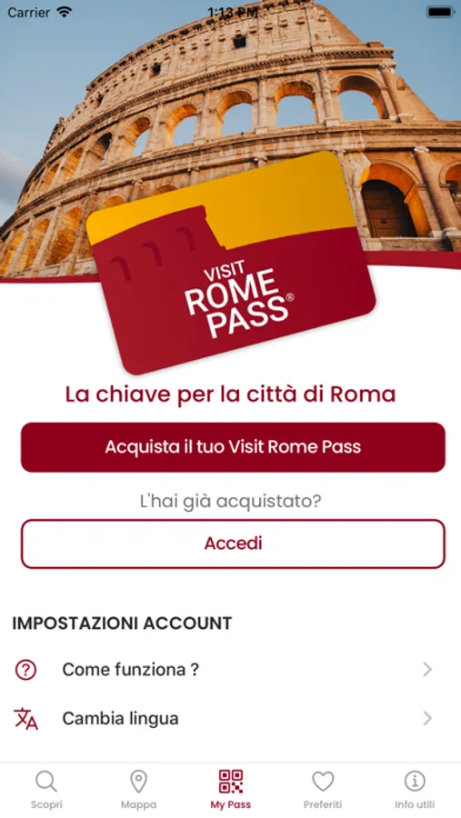 Visit Rome Pass is your Rome tourist app. With Visit Rome Pass you get access to Rome's most iconic attractions, from the Colosseum to the Vatican Museums, and explore the city worry-free on public transport.