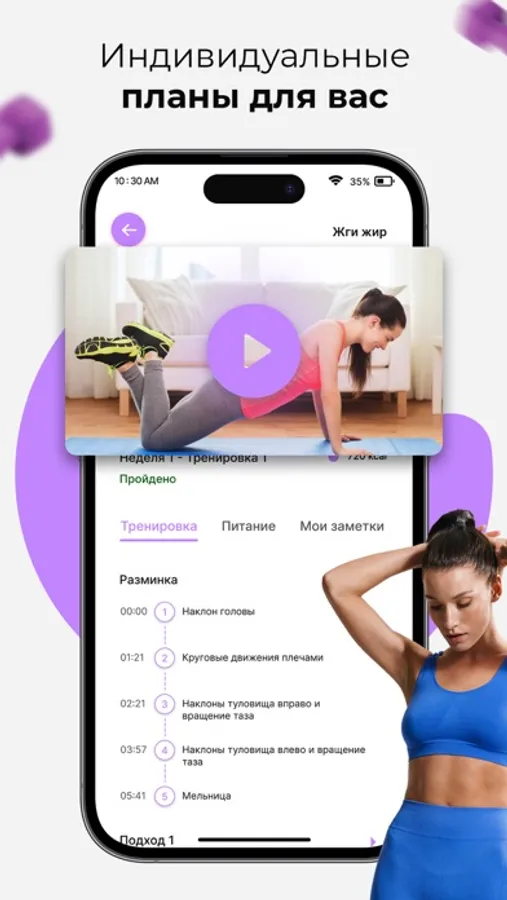IGOFIT предлагает широкий выбор тренировок от профессиональных тренеров, включая йогу, HIIT, кардио, силовые тренировки и многое другое. Выберите свой уровень подготовки и время тренировки, и мы подберем идеальный план для вас.