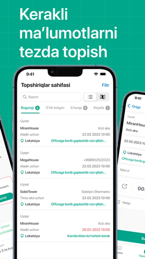 UYSOT CRM biznes egalari, tadbirkorlar va savdo bo'yicha mutaxassislar uchun juda qulay bo’lib, ular istalgan vaqtda va istalgan joyda o’z vazifalari va topshiriqlarini o’z vaqtida kechiktirmasdan bajarish imkonini beradi.