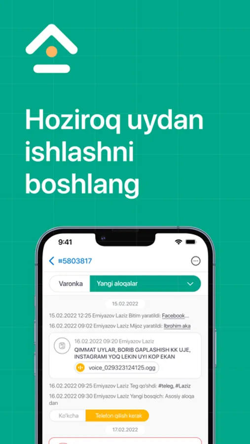 • Qo'ng'iroqlar jurnali va ovozli eslatmalarni qo'shish orqali suhbatingiz tafsilotlarini osongina yozib oling