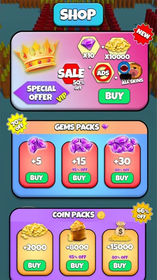 Gems and rare items can be purchased for increased health, movement speed, and invulnerability, making it simpler to outmaneuver and defeat enemies.