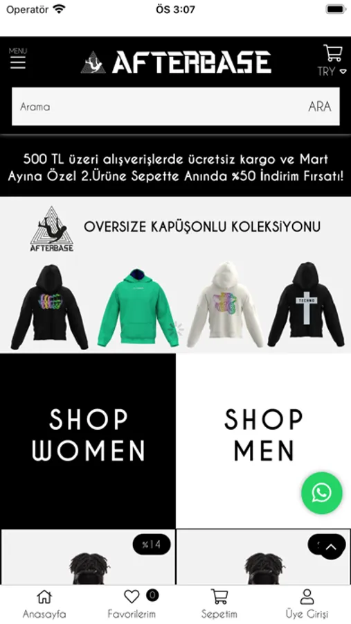 Afterbaseclub.com mobil e-ticaret uygulaması ile anında;