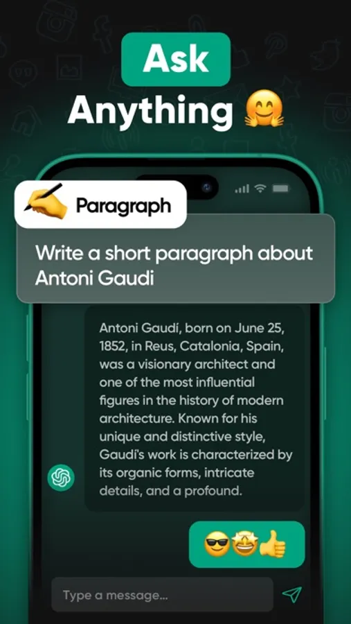 Introducing our innovative iOS app that serves as your personal assistant and interlocutor. With this app, you can have natural and engaging conversations with our advanced AI model, designed to understand and respond to your requests.