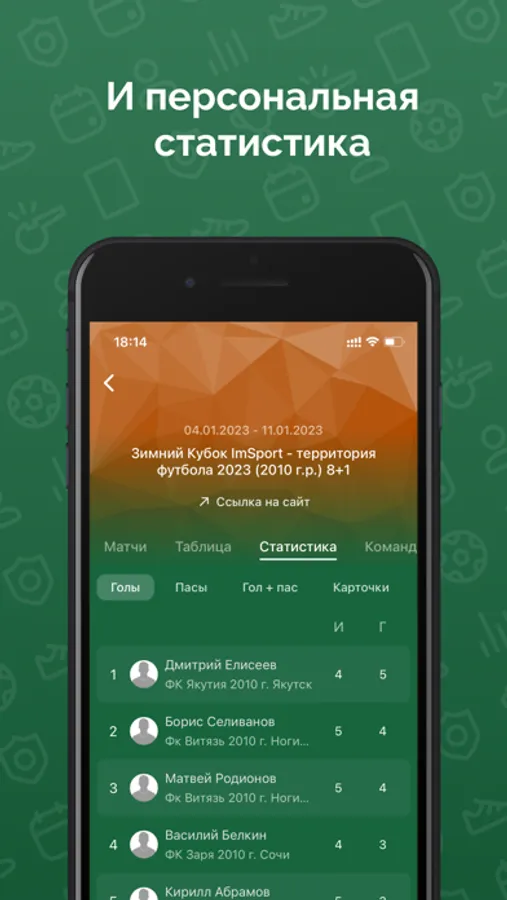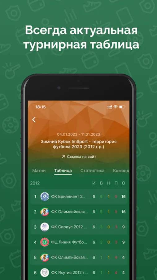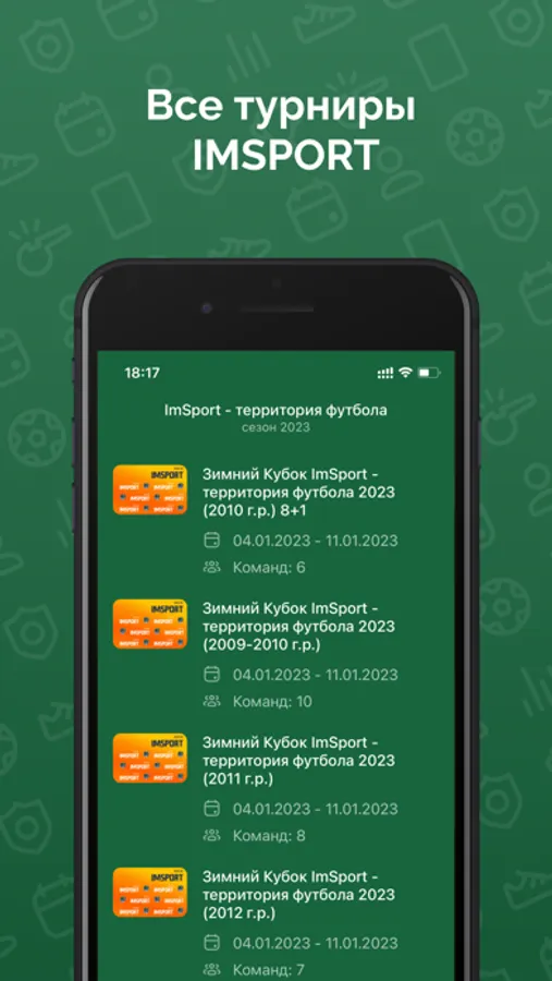 В приложении вы найдете актуальную информацию о турнирах ImSport: календарь матчей и результаты, оперативный матч-центр и подробные протоколы, турнирную таблицу и персональную статистику