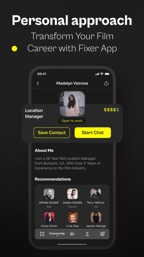 • Connect: Easily build your professional network with FIXER's intuitive platform, designed for film industry professionals to connect and communicate. Save contacts for future projects, engage in real-time chats, and exchange ideas with like-minded individuals from all over the world.