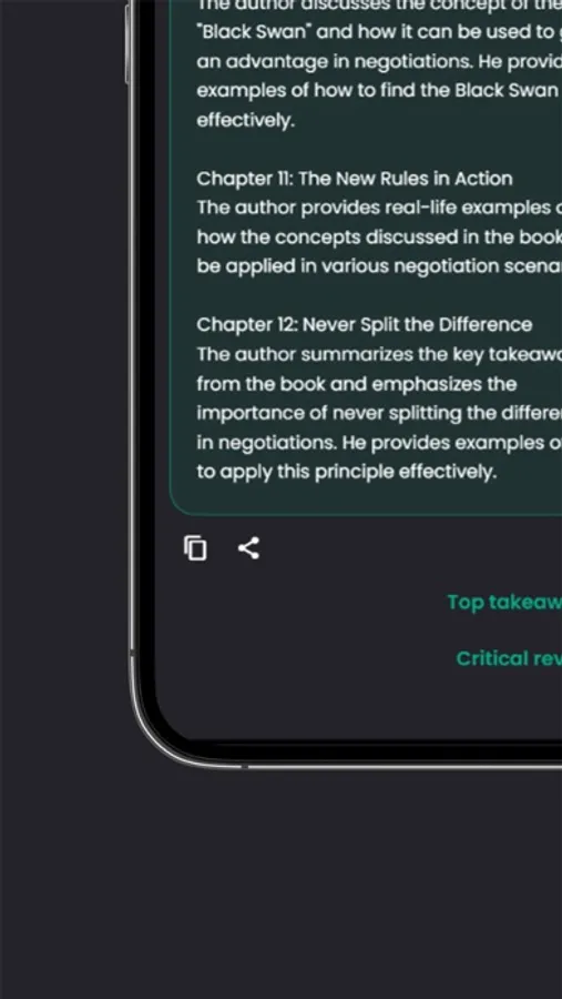 With just a few taps, you can choose from three awesome summary types: Top takeaways, Chapter-by-chapter summary, or Critical review. Whether you want to ace that book club meeting, impress your English Lit professor, or just be the most well-read person in the room, we've got you covered.