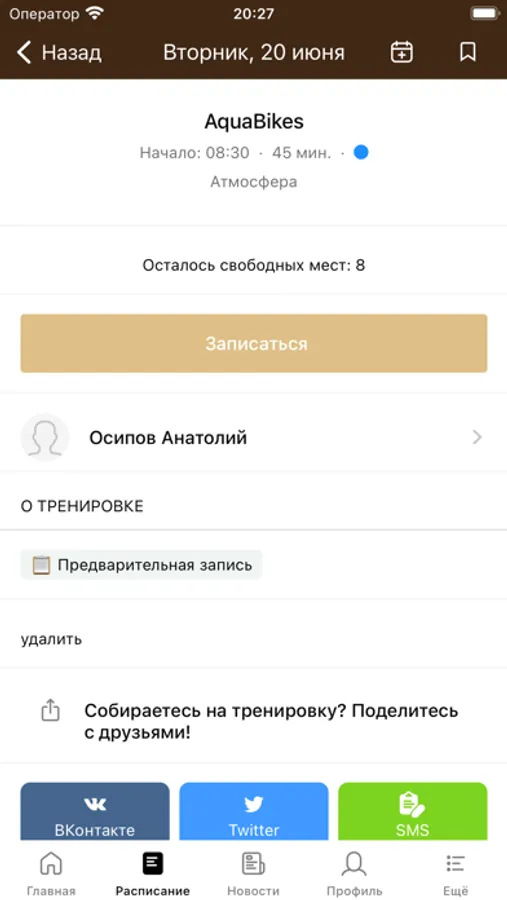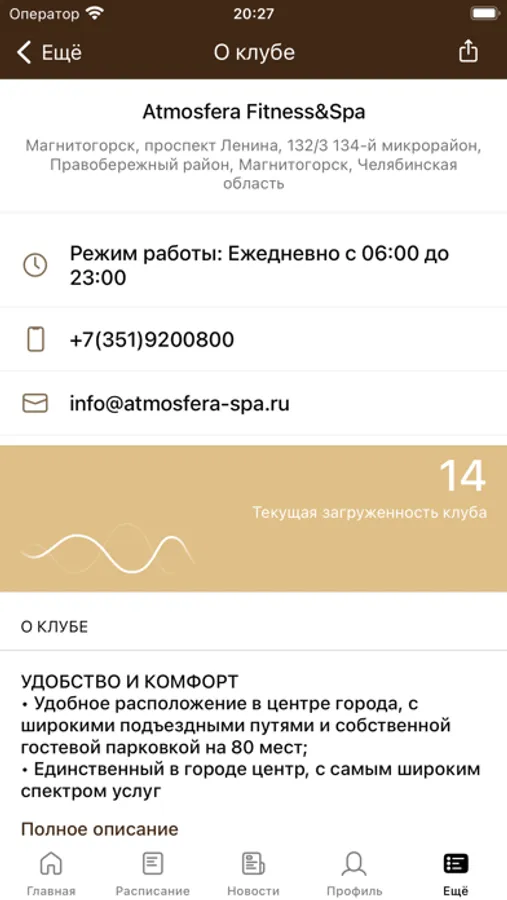 С помощью приложения вы можете следить за новостями, расписанием клуба, оперативно получать информацию об изменениях в расписании и специальных предложениях.