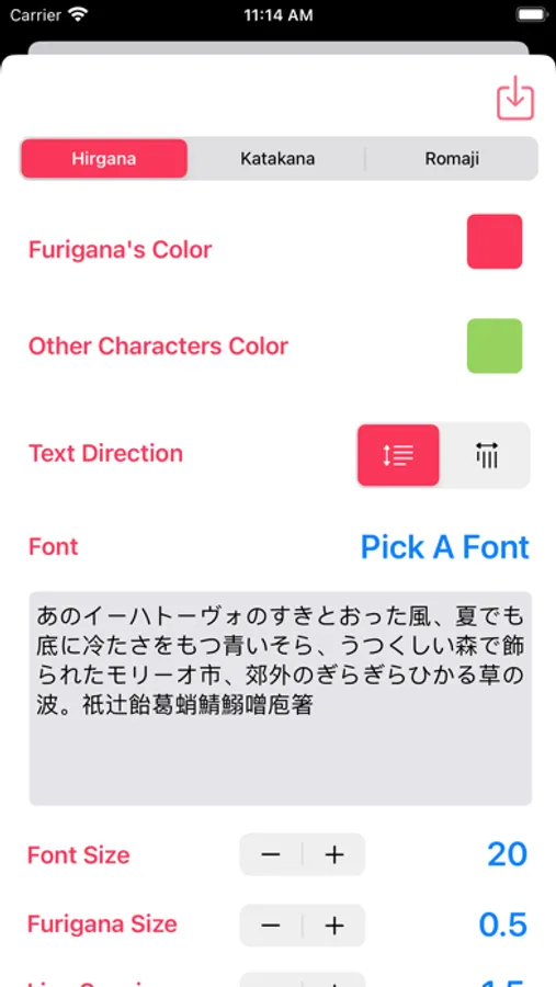the styling of the furiagana all at one once with specific fonts or colors for the first time on iOS!