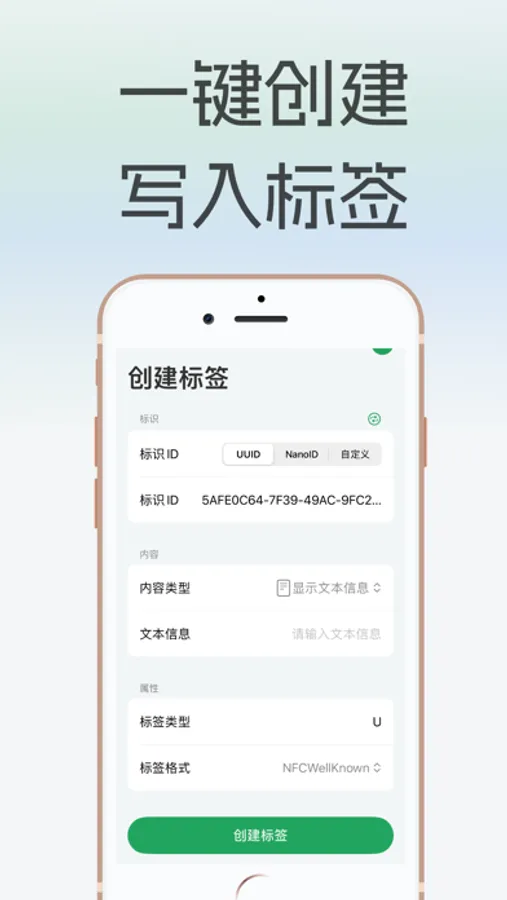 通过借助iPhone 内置的NFC读写硬件进行NFC标签读写的一款工具,可以一键快速读取NDEF NFC标签,并对标签内的内容进行智能识别。同时可以创建各种类型的标签将创建的标签内容写入到你需要的标签内。