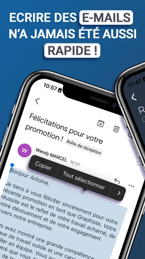 2. Rédaction fluide et personnalisée : Grâce à l'intelligence artificielle, Emailly rédige des e-mails adaptés à votre style d'écriture et à vos préférences linguistiques. Vos correspondants ne verront pas la différence !