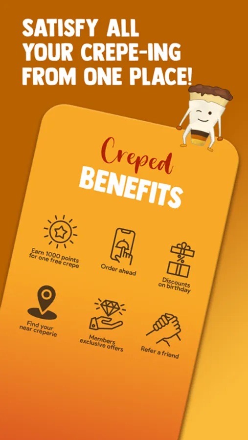 A mouth watering crepe experience and a bite that keeps you coming back for more. Order any of your favorite crepes right away from our App easily with all its user-friendly features. What’s more? It’s absolutely free, fantastic, and time to go cardless. What are you waiting for?