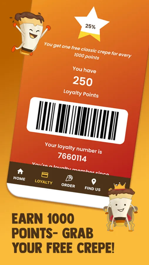 EARN 1000 POINTS! GRAB YOUR FREE CREPE- Earn points with every order you make from Crepe Runner and grab your free Crepe once you complete earning 1000 points!