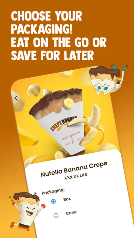 CHOOSE YOUR PACKAGING! EAT ON THE GO OR SAVE FOR LATER - You can choose how you want your crepe to be delivered safely or grab it on your way. Box or Cone, it’s completely your choice!