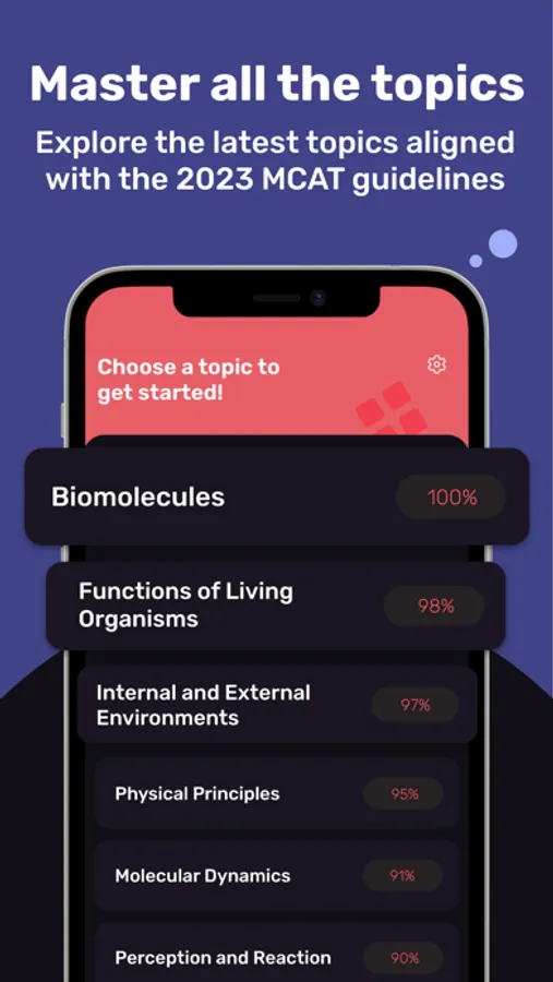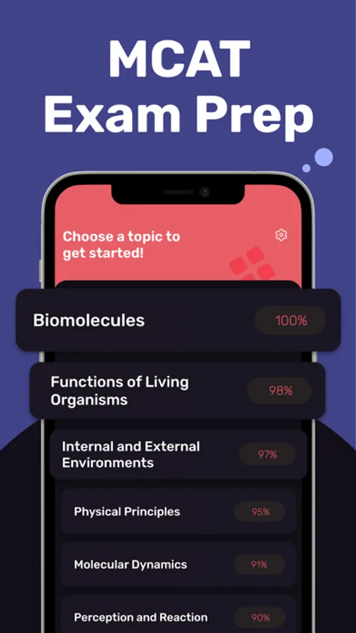 Our goal is to give you all the information you need to pass the MCAT exam. All in one app. This study app directly aligns with the MCAT exam blueprint, giving you the preparation you need to achieve the highest score possible.