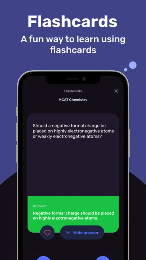 Swipe the cards to quickly review MCAT concepts without the need to go through the whole test, complete the right amount of questions for you, and get some quick studying in.