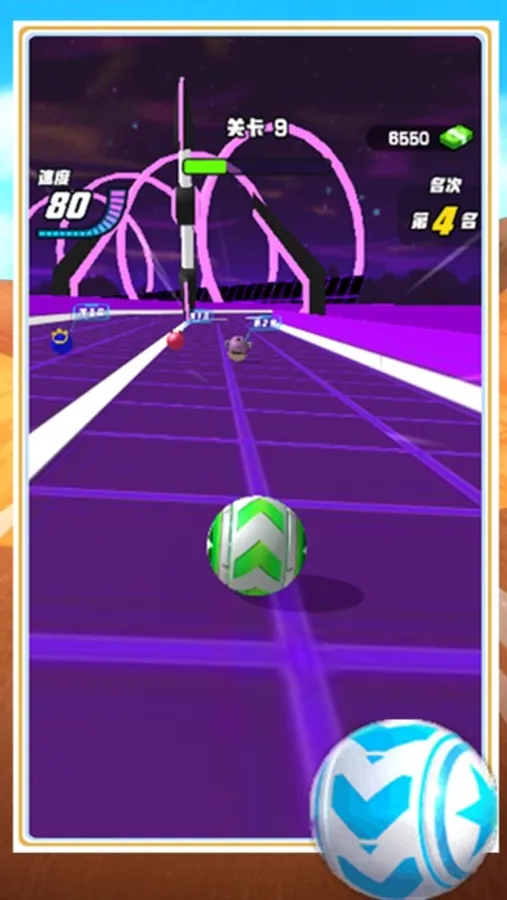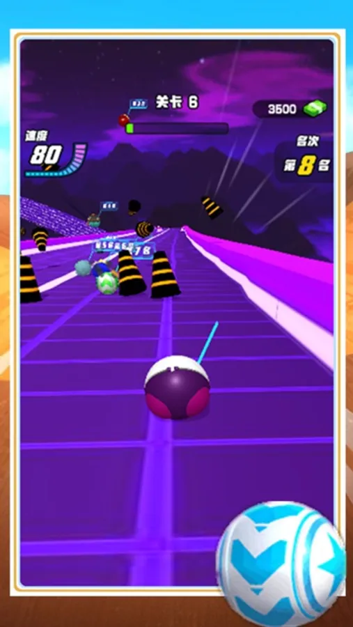 这是一款小球滚动跑酷的游戏。玩家可以选择球的形状,控制球的加速滚动,超越其他球到达关键点进入下一阶段。如果你不注意小球不要被移到海里,否则你需要再次挑战。