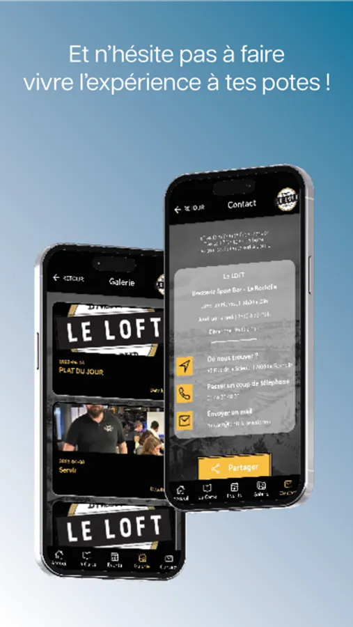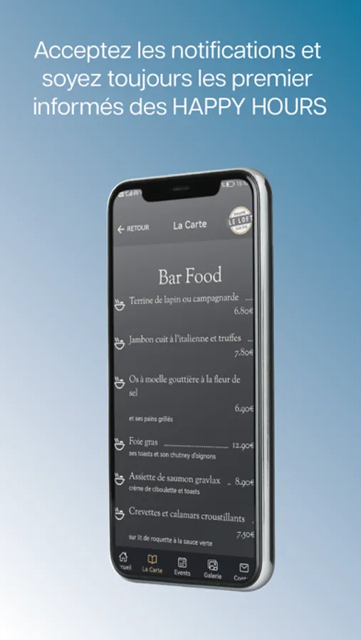 L'application Le LOFT Brasserie vous permetra de garder le contact avec votre Sport Bar grace aux notifications