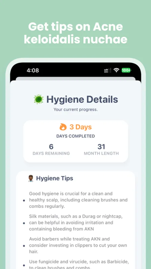 Introducing Barber Bumps Tracker - the ultimate solution for men of colour struggling with barber bumps and acne keloidalis nuchae. With Barber Bumps Tracker, you can take control of your skin's health and track your daily progress with ease.