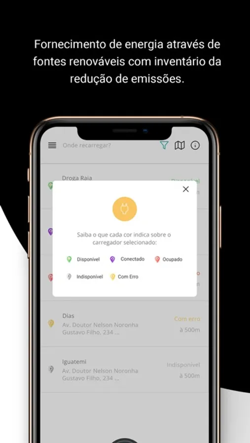 Você pode acompanhar quais locais estão disponíveis para recarga na sua ou em outra região. E ainda consegue ver o horário de funcionamento, caso queria recarregar depois. ;)