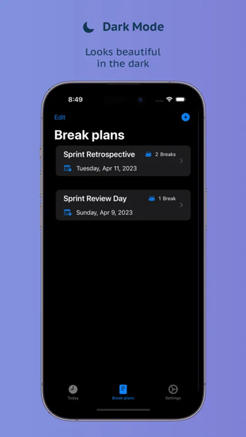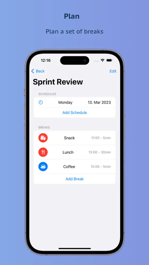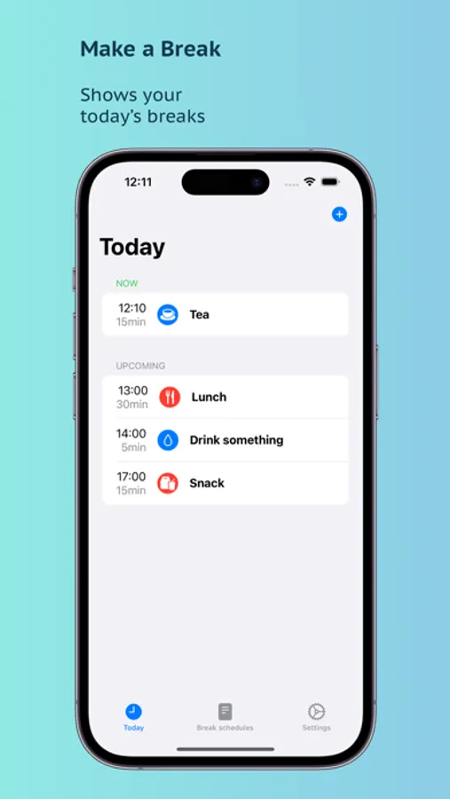 Optimize your breaks with Make a Break. Take time for yourself and improve your focus and productivity. With Make a Break you can create and manage breaks for your daily needs.