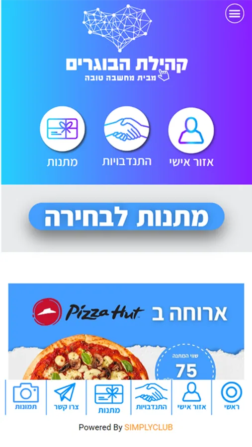 אפליקצית קהילת הבוגרים מבית מחשבה טובה, נועדה עבורכם. אתם מתנדבים במגוון מקומות לבחירתכם, צוברים נקודות ומקבלים הטבות לרכישת מגוון מוצרים שיסייעו לכם להמשיך לסלול את הדרך להצלחה והצטיינות בצבא, אקדמיה ובקריירה המקצועית.