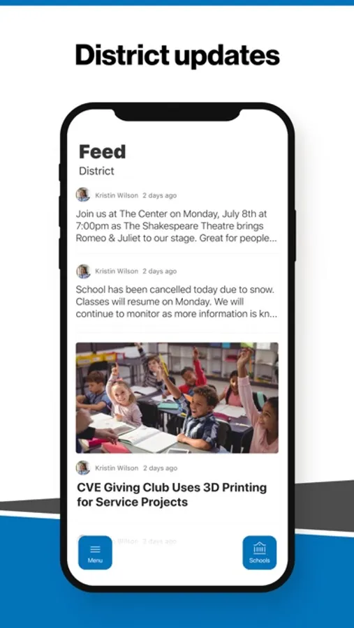 In the Live Feed is where you'll find updates from the administration about what's going on in the district right now. Whether that's celebrating a student's success, or reminding you about an upcoming deadline.