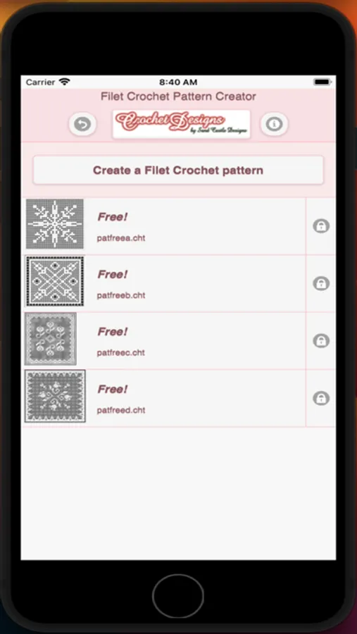 You also can select from over 400 stamps, inserts and borders to apply to your filet crochet pattern.