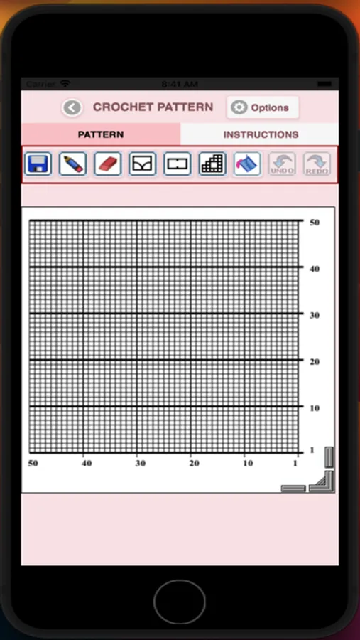Undo icon - undo each last change you made to the filet crochet pattern.