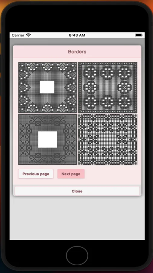 Borders button - add filet crochet borders to your pattern. Borders automatically wrap around your filet crochet pattern.