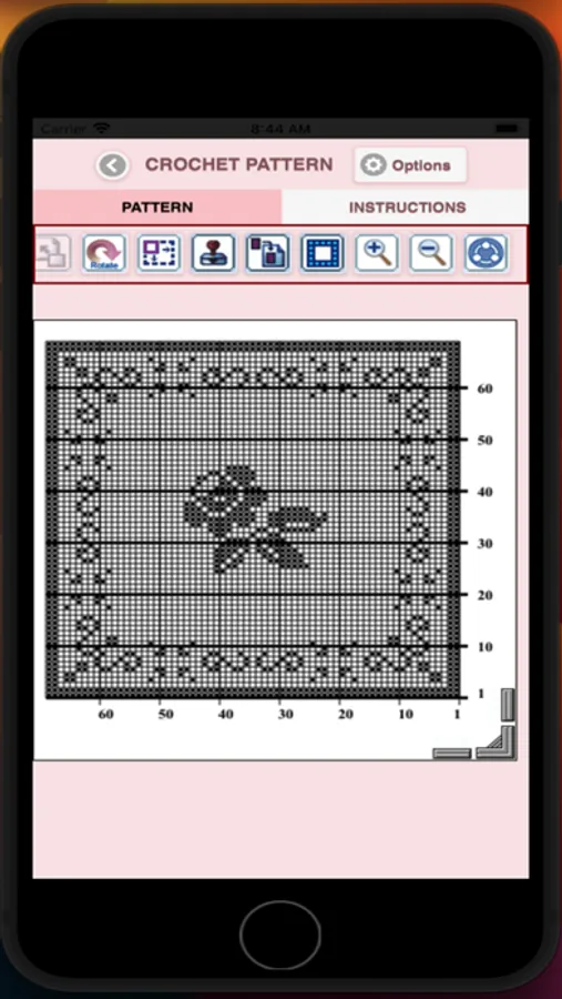 Resize bars - resize bars are display at the bottom right corner of your filet crochet pattern. Drag them to resize your filet crochet pattern.