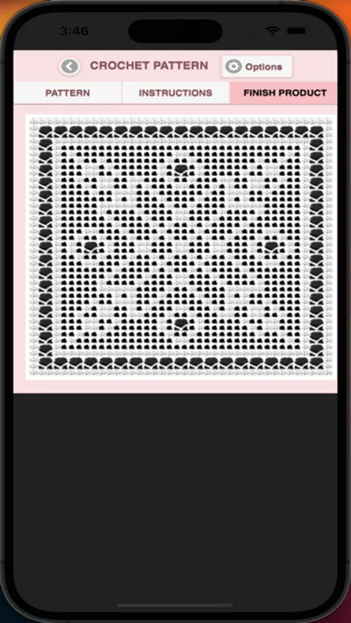 Share button - share a picture of your filet crochet pattern using email, text etc.