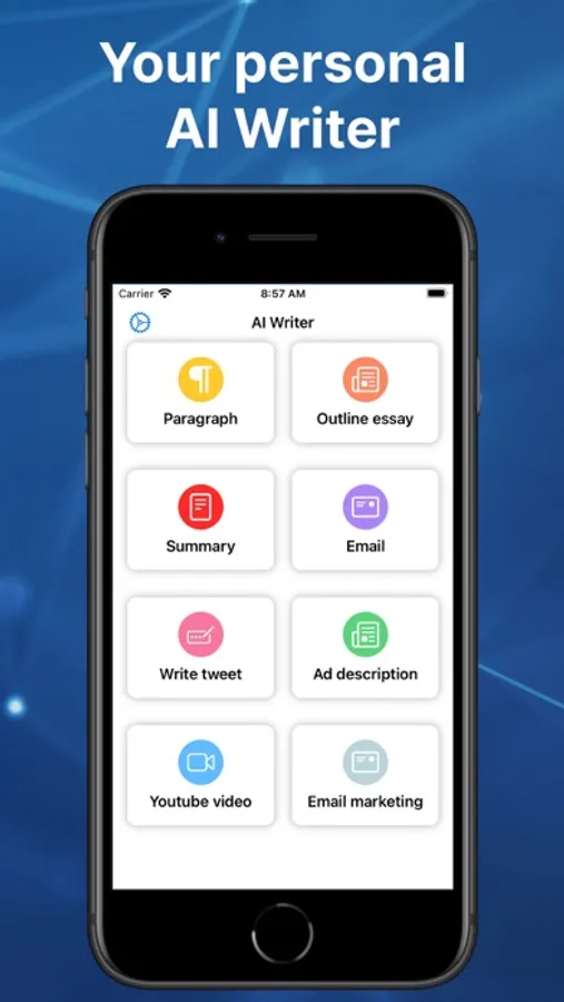 Our AI Writer app is the ultimate tool for anyone looking to enhance their writing productivity. With its advanced algorithms and natural language processing capabilities, the app generates unique and compelling content ideas in seconds. Whether you're writing blog posts, marketing copy, or academic papers, our AI Writer app can assist you in creating high-quality content in a matter of minutes. It's like having a personal writing assistant at your fingertips! No more struggling with writer's block or spending hours researching and drafting content. Our AI Writer app is the perfect solution for busy professionals, entrepreneurs, and students who want to streamline their writing process and achieve their writing goals.