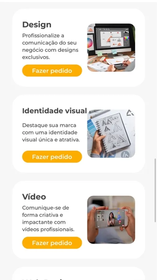 Com o 4MI, você pode solicitar e acompanhar todo o processo de produção de serviços criativos de alta qualidade diretamente pelo app. Preencha o formulário, crie uma conta, escolha o produto e a data de entrega. Você terá acesso a serviços de Design, Web Design, Identidade Visual e Vídeo, com opções específicas em cada um deles. Além disso, você pode escolher a opção de entrega expressa e contar com a qualidade da FMG Publicidade, uma agência com anos de experiência em produção de materiais criativos.