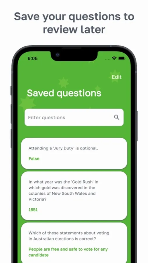Prepare for the 2023 Australian citizenship test with ease using Aussie Citizenship Test, the comprehensive app that's designed to help you succeed. Our app features up-to-date practice questions covering Australian history, government, culture, and values, along with detailed explanations for most of the questions to help you understand why the correct answer is the best choice.