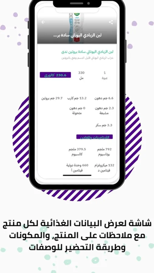 يتم ادخال بيانات القيم الغذائية للمنتجات الغذائية بكل دقة حسب معاييرنا الصارمة والتي تتضمن وجود حجم الدهون، وحجم الكاربوهيدرات، وحجم البروتين.