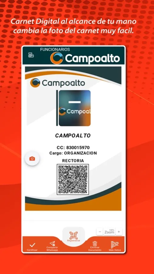 Es una herramienta que permite la creación, publicación, carga en dispositivo y validación de carnet digital, para este ultimo, los usuarios autorizados por medio de la App Movil de validación o por medio de dispositivos de lectura codigo QR, pueden verificar que la persona portadora del carnet, sea realmente quien dice ser.